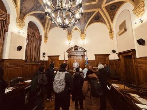Recently, the class visited the Hall of Records in Newark, NJ to meet with LGBTQ Office Director Reggie Bledsoe, who walked them through the office's mission and Essex County's governance structure. During their tour, they ran into Commissioner President Carlos Pomares and Vice President A'Dorian Murray-Thomas, who graciously stayed after their meeting to teach the students about the county legislature's role in policymaking, and invited them into the commissioner president's office for an impromptu discussion.