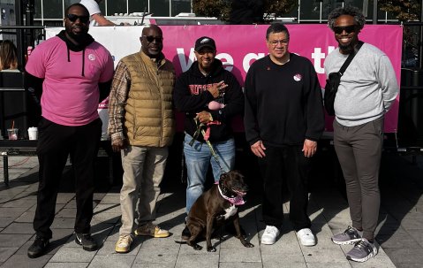 Pictured At the Making Strides Against Breast Cancer Walk on Sunday, October 19 (L to R): Newark City Council President Larry Crump – whose mother, Mildred Crump, was a Newark City Council member and SPAA alumna (EMPA'09), Tayden Judge (MPA'16), James Blaney (EMPA'10), and Aaron Gibbs, Rutgers SPAA.